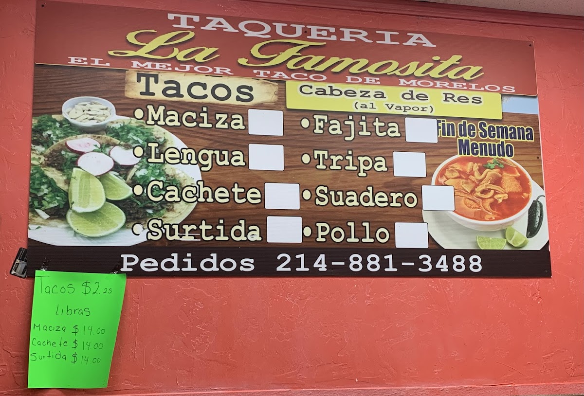 Taqueria La Famosita Menu